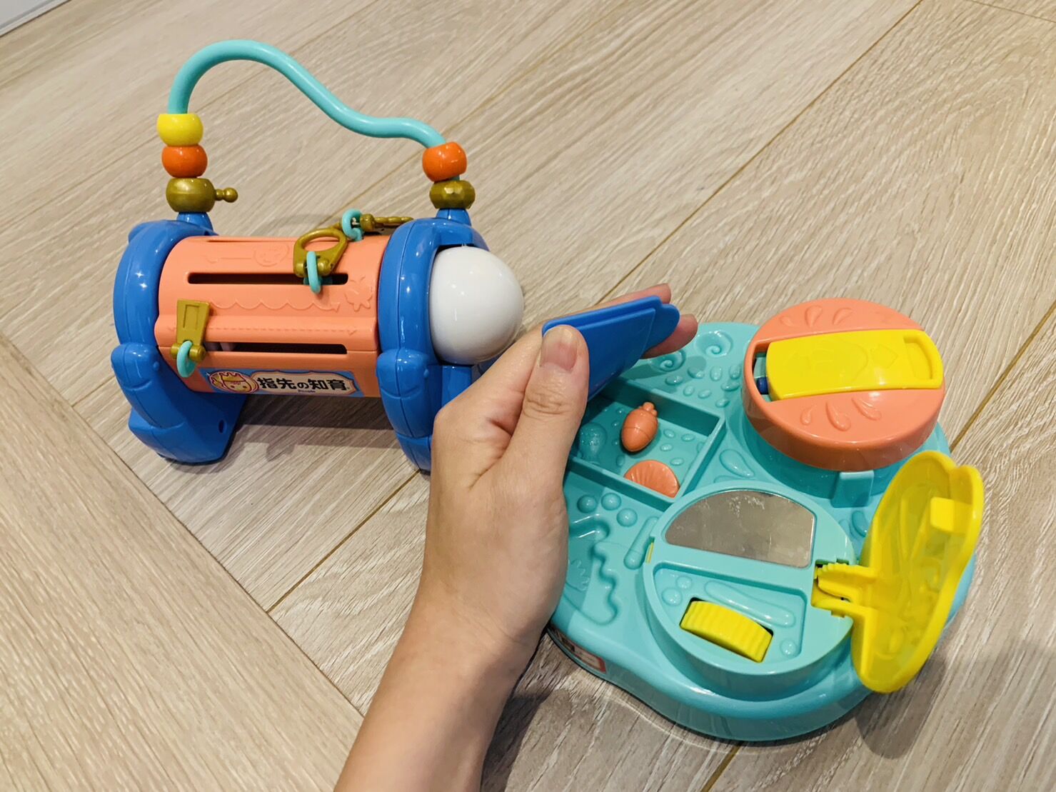 0歳息子のヒットおもちゃ【10か月まで】 2023年09月25日 カテゴリ : 妊娠出産色んなレポート こんにちは!原田ちあきです。本日は息子のヒットおもちゃをピックアップして紹介していこうと思います。あくまで息子個人のヒット商品ですが、ちょこっとしたプレゼント選びなどにお役立ていただければ幸いです✌【2か月あたりから】手に持ってシャカシャカ振るやつ大小さ こんにちは!原田ちあきです。本日は息子のヒットおもちゃをピックアップして紹介していこうと思います。あくまで息子個人のヒット商品ですが、ちょこっとしたプレゼント選びなどにお役立ていただければ幸いです✌【2か月あたりから】手に持ってシャカシャカ振るやつ大小さまざまなガラガラを試したのですが、軽くて握りやすいものが一番好きみたいです。写真に写っているものが一番好き。友達がくれたおむつケーキに刺さっていました。最高!10か月の今でもたまにシャカシャカして遊んでいます。このおもちゃで手首を動かすことを勝手に学んでくれたのでかなりありがたいおもちゃでした。どこからでも握れるボールのやつつかむ、自分の元に手繰り寄せる、握り替えるなどはこのおもちゃで覚えました。これ考えた人本当に頭いい…【3か月から】エドインター音いっぱいつみき画集の担当さんにいただきました。最高!それぞれのつみきから「カラカラ」「チリチリ」「シャカシャカ」と色んな音が聞こえます。息子は今のところ噛み噛みしたりフリフリして音を聞いたりして楽しんでいるのですが、ここから本来のつみきの用途としても使用できそうなので長く楽しめそうです。私も小さい頃つみきが好きだったな~ぬいぐるみ各種ぬいぐるみも色々と試したのですが、息子的に適度に綿が詰まっていて、耳や足など齧りやすい先っちょが存在するものがお気に入りみたいです。先っちょに食らいつく息子、控えめに言って最高!!これはお気に入りアベンジャーズたち🐻布絵本布絵本、全部頂き物なんですがマジで何冊あってもいい…本をめくるという行動はこれで覚えた気がします。お出かけするときにいつもかばんに1冊入れています。本を読む赤ちゃんマジ可愛い。【5~6か月ぐらいから】赤ちゃん用歯ブラシ歯が生えてきた!歯ブラシの練習をするぞ!ということで購入。歯ブラシの代わりになっているかは謎ですが歯固め代わりによく噛み噛みしています。可愛いから正直歯ブラシでもおもちゃでも何でもいい。リモコンのおもちゃあかちゃんあるある「リモコンへの異常な執着」への対策に購入しました。 まだぜ~んぜんだまされてる!! もっとリアルなヤツもあるみたいだからいろいろ探してみるのも楽しそうです。 ラッキ~!おままごとの野菜 どうしても息子とおままごとをしたくて買った野菜たち… 後追いが凄すぎる時にマキビシのように地面に撒いておくとしばらく足止めできます。 トイレにどうしても行きたいときとかに…助かってる…ほんとありがとう… ただ、対象年齢などもあるので一人遊びはさせないこと、小さな部品のあるものは絶対に渡さないことは心がけています。当たり前ですが絶対見守れる位置にいる時だけ手に持たせています☺️私はパーティークイーンってシリーズが好き。【7か月ごろから】ビニールプールプールデビューした!子供の水着可愛い!!今年の夏、あまりにも暑すぎて「外に出たら死ぬんじゃないか…?」と怖くなり、基本的に家で過ごしていたのでプールは本当に買ってよかった。親も入れるし!すぐお風呂にも入れるし!家最高!アンパンマン よくばりビジーカーこれ最高!親戚から頂きました。車に乗って自立してる赤ちゃん面白すぎる。そしてこちら、欲張りビジーカーの名に恥じない欲張りぶり…サイドには歯車に窓、ブロックが2つ、リモコンとハンドル、エンジンなどの各ボタン、鍵遊びにレバー遊び、くるくる回すドラムなんかもついていて、息子も乗りこなしまくっています。とにかくボタンがついているのでボタンをガチャンガチャン打ち鳴らしていてにぎやか。打ち鳴らしてくれてありがとう。【10か月から】ピープル・指先の知育シリーズ漫画家の吉本ユータヌキさんがくれたこども商品券でゲットしました。これ、ベビーカーに乗ってる時に持たせていたんですが、これをいじいじしているうちに一気に物をつまむ、離すを習得しました。すごい!これのおかげで最近パパのすね毛をつまんで抜くことにもハマっています。やったね!ボーネルンド・テディゴーラウンドこれも友達からの頂き物です。元ヴィレッジヴァンガードの店員さんで、仕事で知り合って今も遊んでくれるの~!上のボタンを押すとくるくる回るんです。押し心地が良くて大人もついやっちゃう。あと飾ってるだけでかわいい…ピープルの指先知育シリーズをマスターしたら急に「押す」も身に着けて自分でおもちゃの棚から出してはくるくるとまわして遊んでいます。ありがとうピープルの指先知育シリーズ…ジョイパ