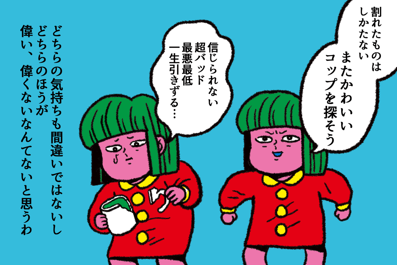 例えばお気に入りのコップを割ってしまっても「次のコップを探せばいいや」と思える人もいれば割ってしまった事を一生悔やみ続ける人もいると思うの。